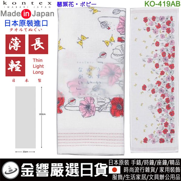 【金響日貨】kontex KO-419AB 罌粟花(日本原裝):::日本製,今治毛巾,純棉毛巾,洗臉巾,洗澡巾,紗布巾,長毛巾,刷卡或3期