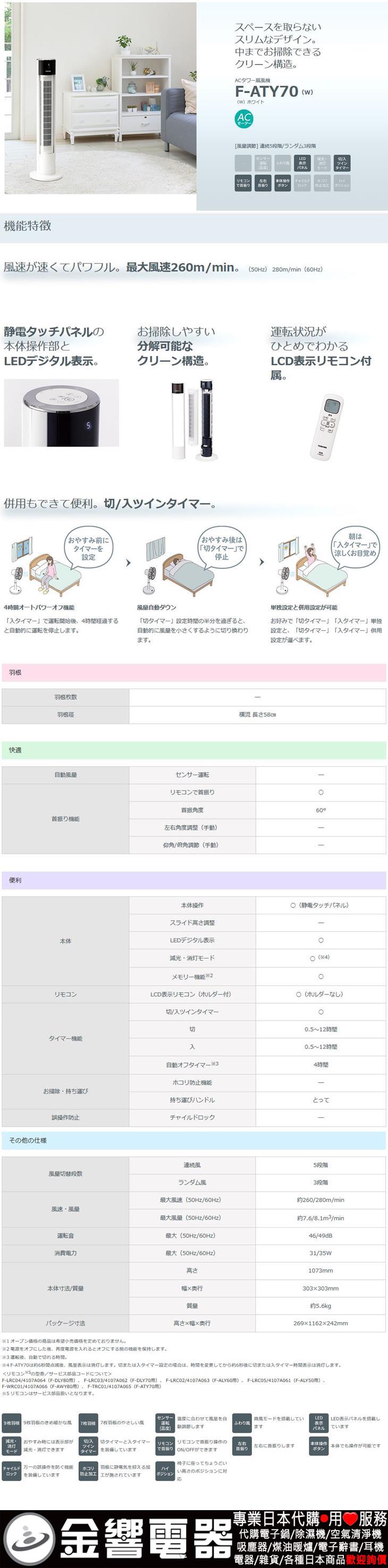【金響代購空運】TOSHIBA F-ATY70-W(日本國內款):::2020年,東芝,AC交流馬達電風扇,大廈扇,附遙控器,刷卡或3期零利率,F-ATY70(W)