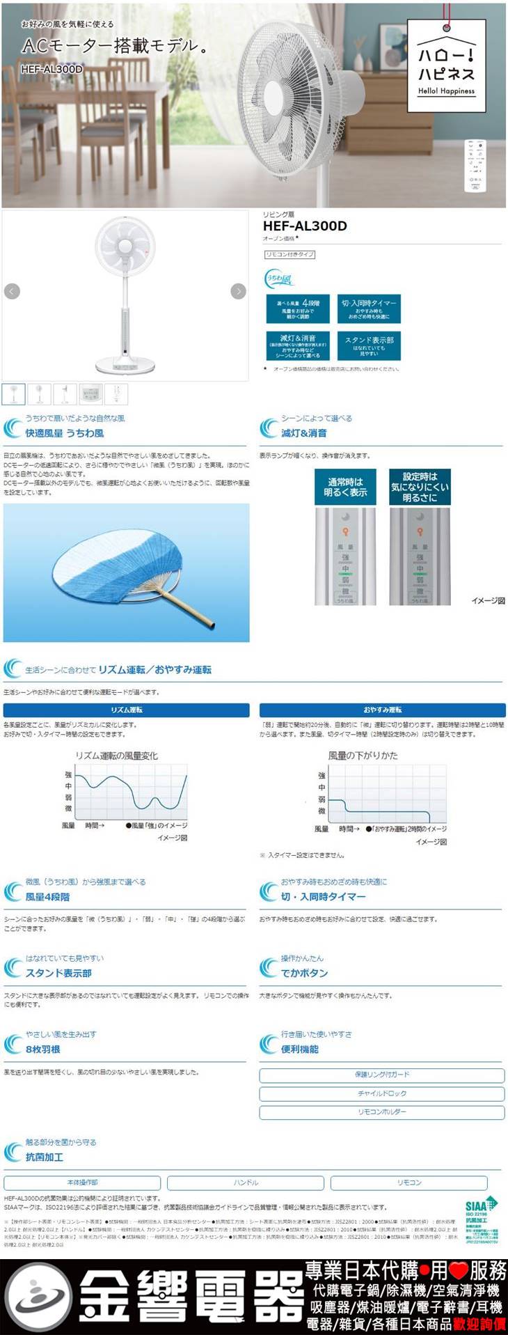 dot 【金響代購】空運,HITACHI HEF-AL300D(日本國內款):::2022年,日立居家電風扇,立扇,附遙控器,HEFAL300D