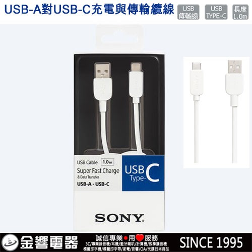 SONY CP-AC100/W白色(公司貨):::USB-C-USB-A,480Mbps高速傳輸,USB-A對USB-C充電與傳輸纜線,約1.0m,刷卡或3期,CPAC100
