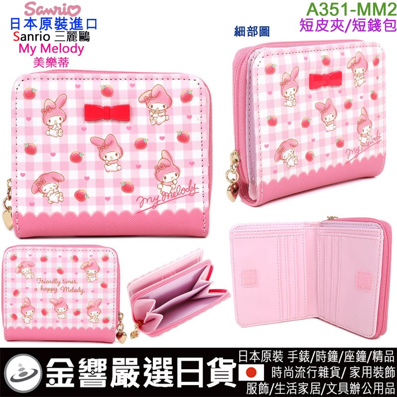 【金響日貨】現貨,Sanrio A351-MM2(日本原裝):::三麗鷗,My Melody,美樂蒂,錢包,皮質拉鍊短夾,刷卡或3期,4550337733684