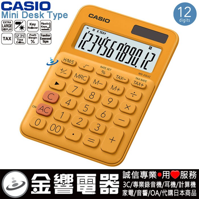 CASIO MS-20UC-RG(公司貨,保固2年):::馬卡龍計算機,小型桌上型,商用計算機,12位數,利潤率計算,刷卡或3期,MS20UC