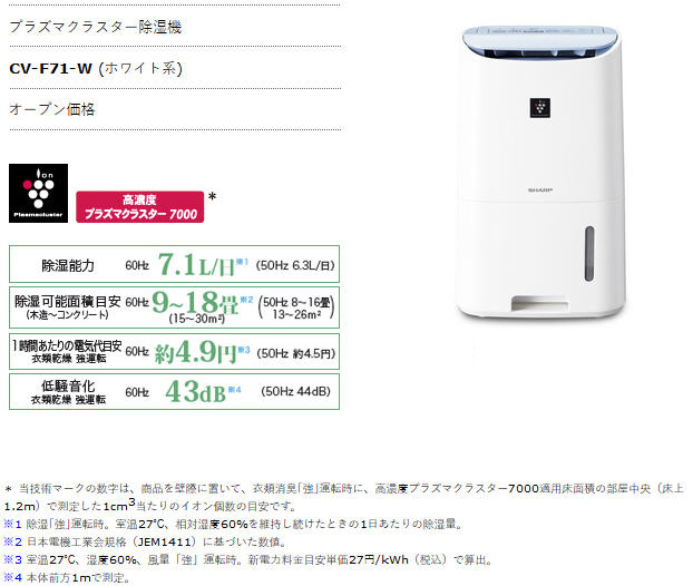 代購海運,SHARP CV-F71-W(日本國內款):::衣類乾燥空氣清淨除濕機,消臭,除菌,負離子,9坪,刷卡或3期零利率,CVF71