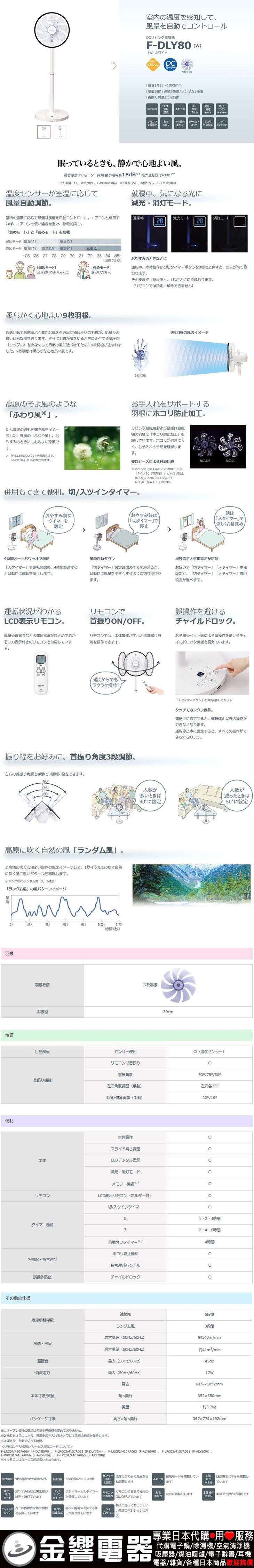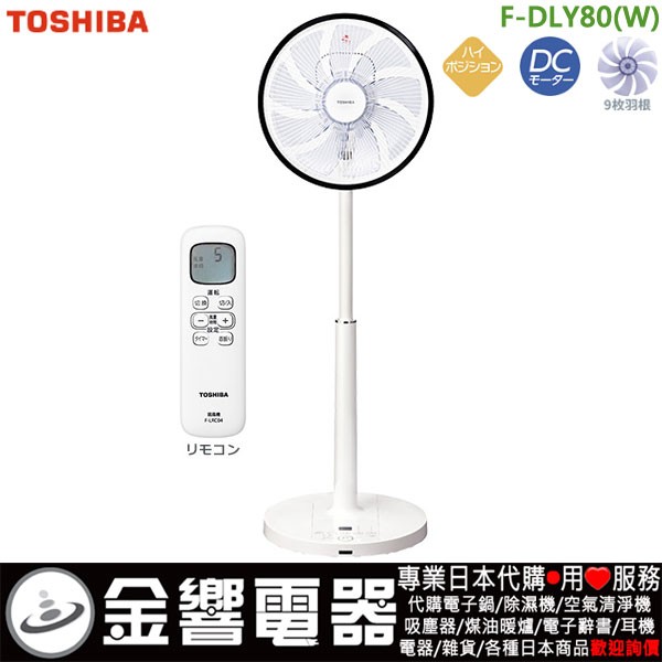【金響代購空運】TOSHIBA F-DLY80-W(日本國內款):::2020年,東芝,DC變頻馬達,電風扇,立扇,附遙控器,刷卡或3期零利率,F-DLY80(W)