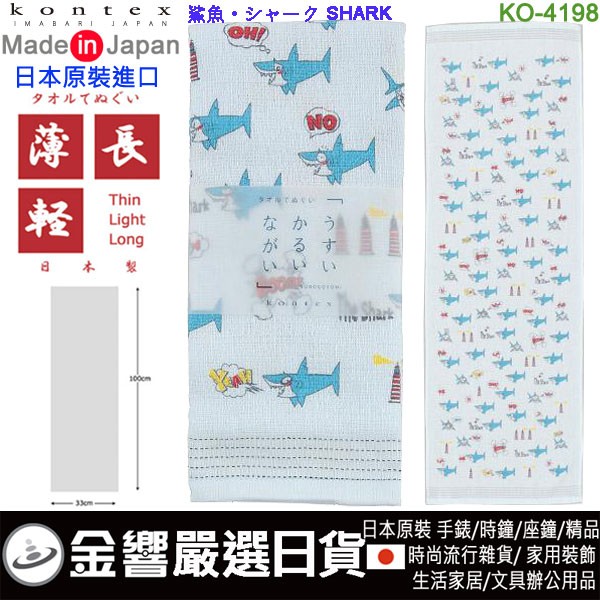 【金響日貨】kontex KO-4198 鯊魚(日本原裝):::日本製,今治毛巾,純棉毛巾,洗臉巾,洗澡巾,紗布巾,長毛巾,刷卡或3期